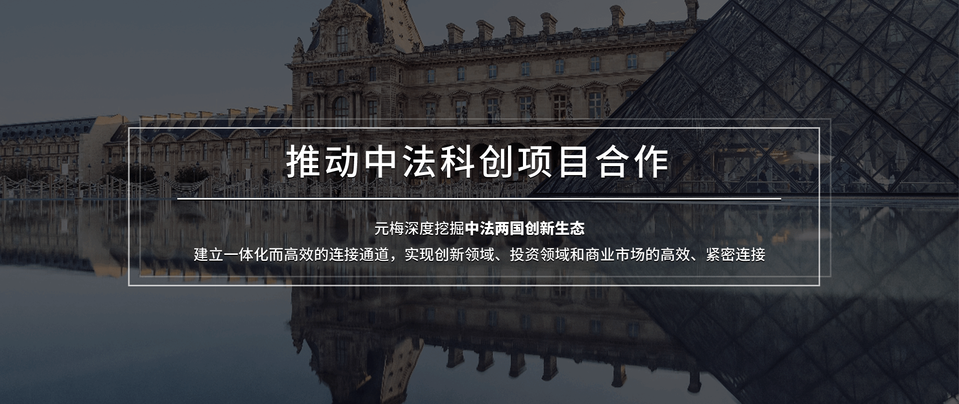 元梅是中国首家创新型中法企业加速器,专注于协助法国科创公司和中国中小企业、科创公司加速实现国际化发展,进入双方市场。我们是中法科创企业跨境合作的引领者,以国际化的视野和专业的中法团队,为企业提供创新性、跨境化的支持,推动其在中法两国市场取得成功。